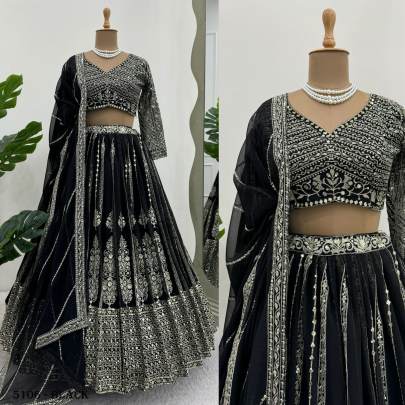 Embroidered Georgette Lehenga With Blouse And Dupatta