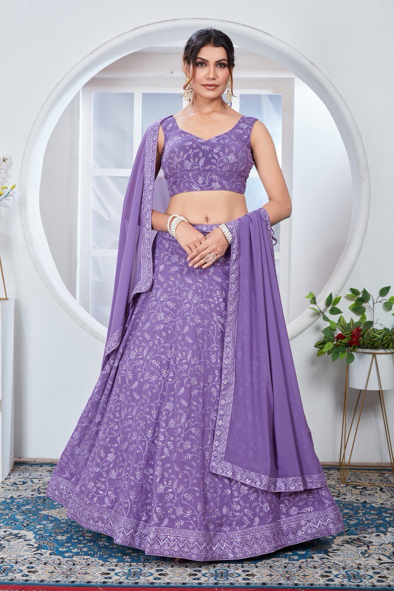 LAVENDER COLOR SEQUINS WORK ON GEORGETTE FABRIC CHIC LEHENGA
