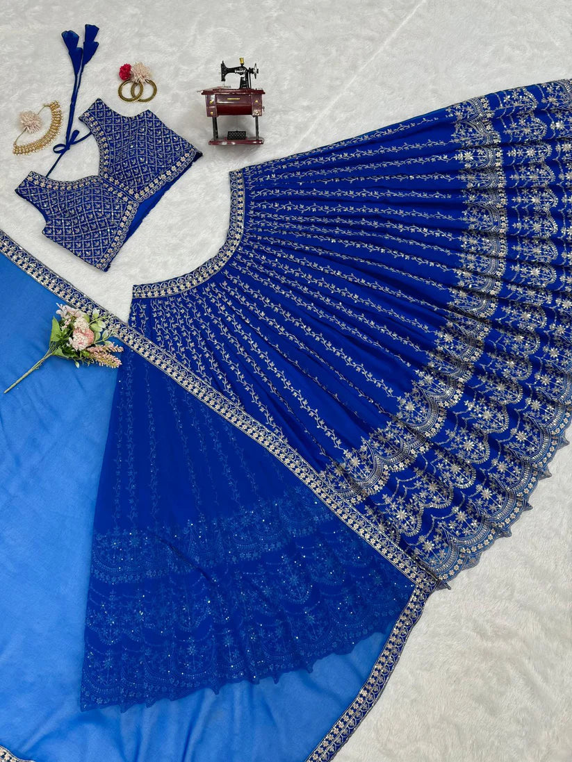 Mesmerizing Blue Georgette Sequence & Thread Work Lehenga Choli