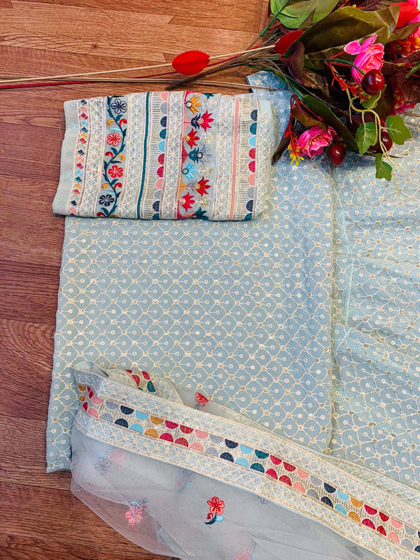 Women's Sky Blue Faux Georgette Designer Lehenga