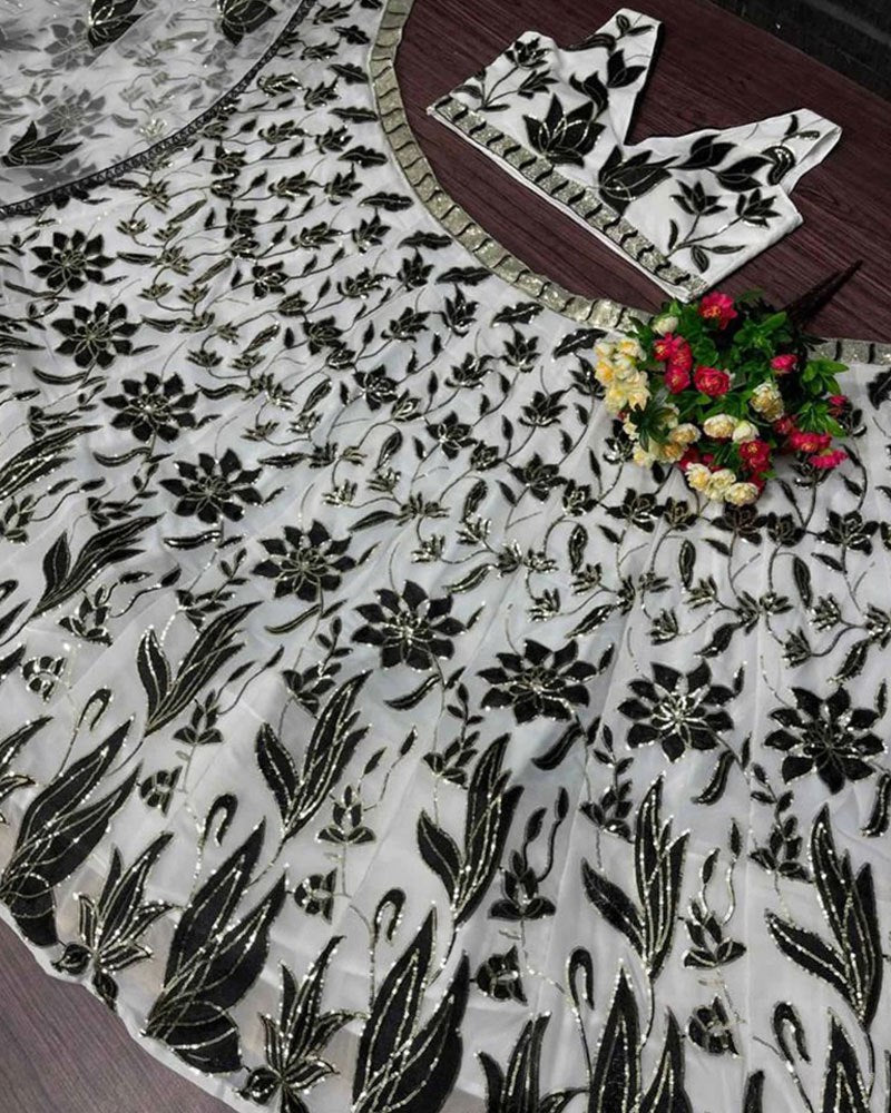 🌼WORK:- BLACK THREAD AND 3MM SEQUINS EMBROIDERY WORK