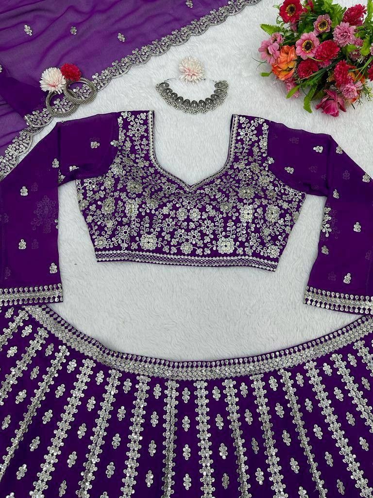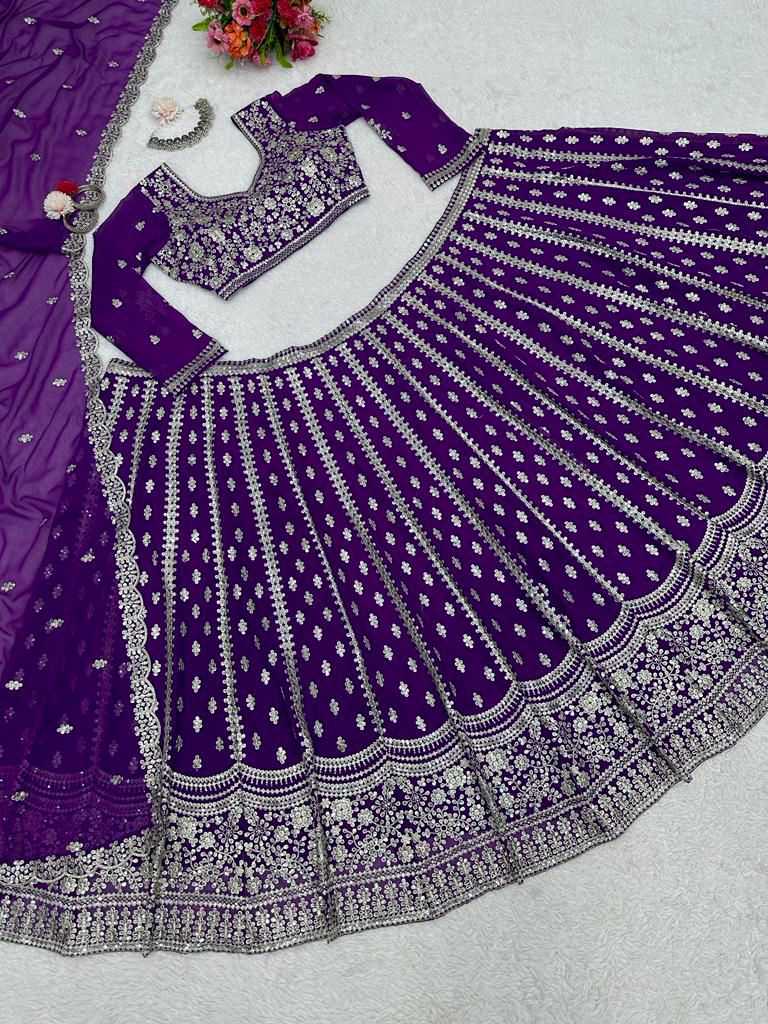 WEDDING WEAR EMBROIDERY SEQUENCE WORK LEHENGA CHOLI WITH DUPATTA PURPLE